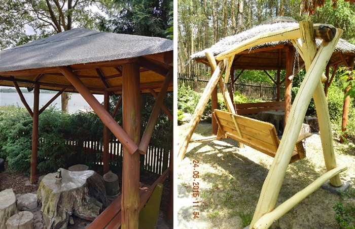 Na rozległym ogrodzonym i oświetlonym terenie znajdują się altanki i huśtawki 2-3 osobowe, „przenośne ognisko” oraz wiele miejsc do indywidualnego wypoczynku.